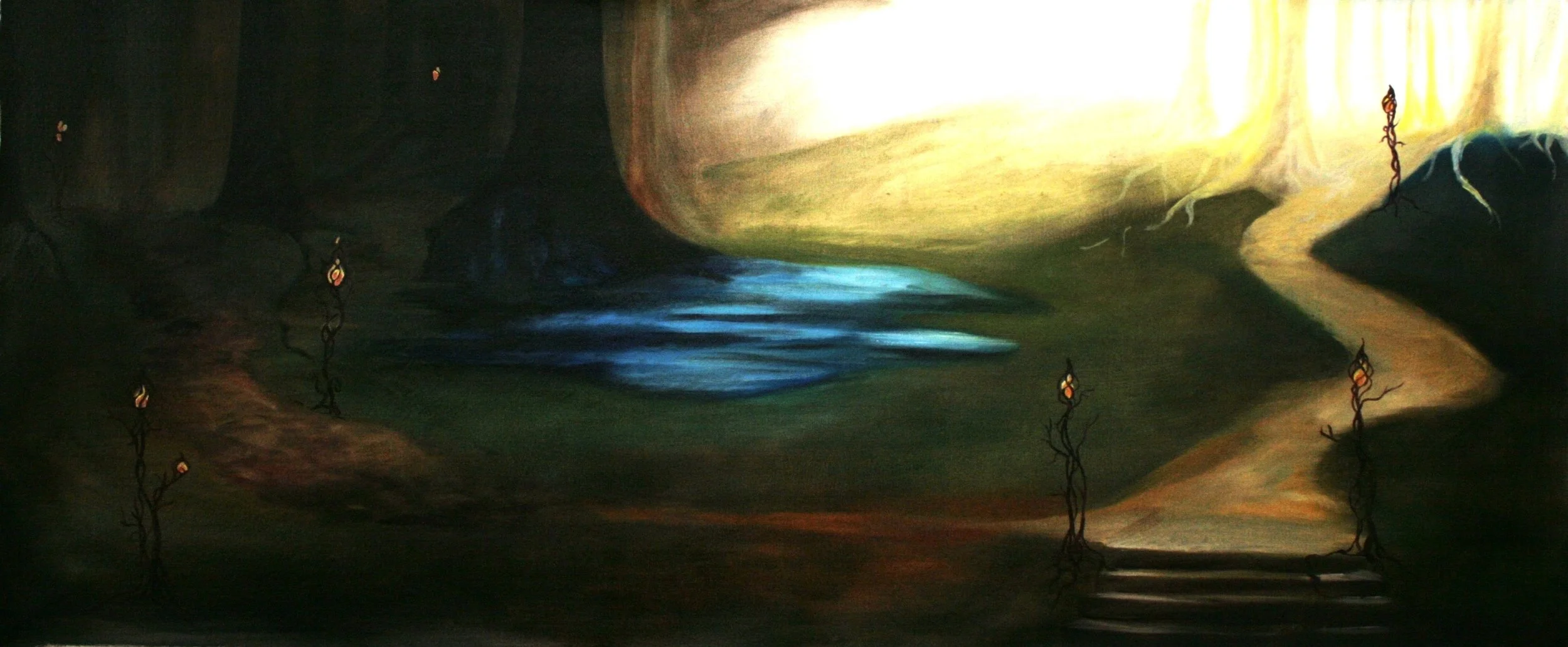 Nature holds the most curious things. Legends and folklore have always grabbed my attention. The ties between the natural, but unknown have followed camp side stories for centuries. Strange creatures, lights that shouldn’t be there, out of place colors, songs that capture the heart, and ethereal forests are guides in my paintings.